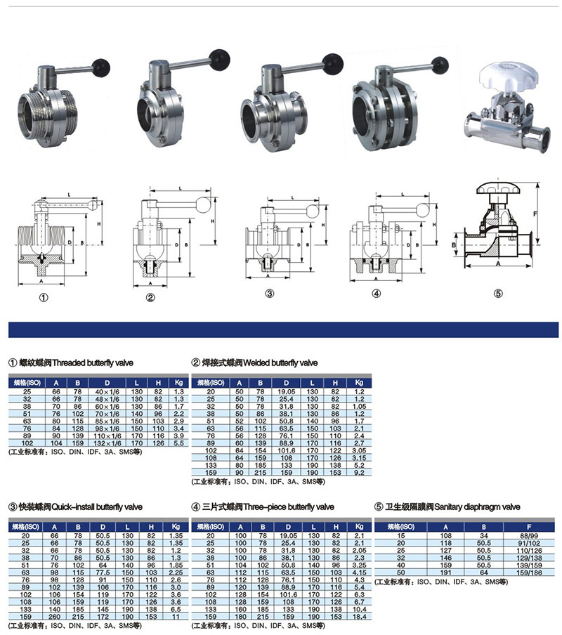 標 準: ISO、DIN、IDF、SMS、3A等