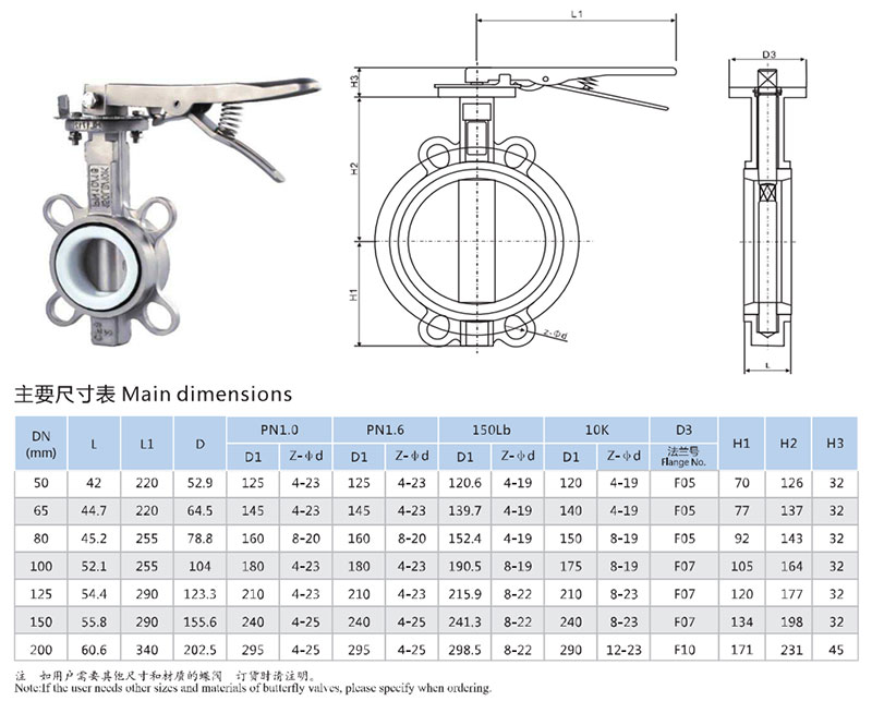 手動不銹鋼對夾式蝶閥